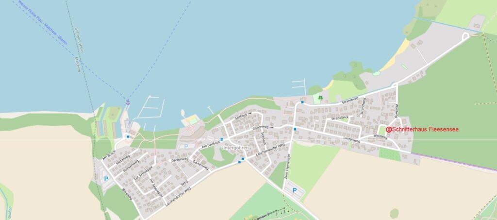 Schnitterhäuser Fleesensee in Untergöhren (®Open Database Licence (ODbL) 1.0)